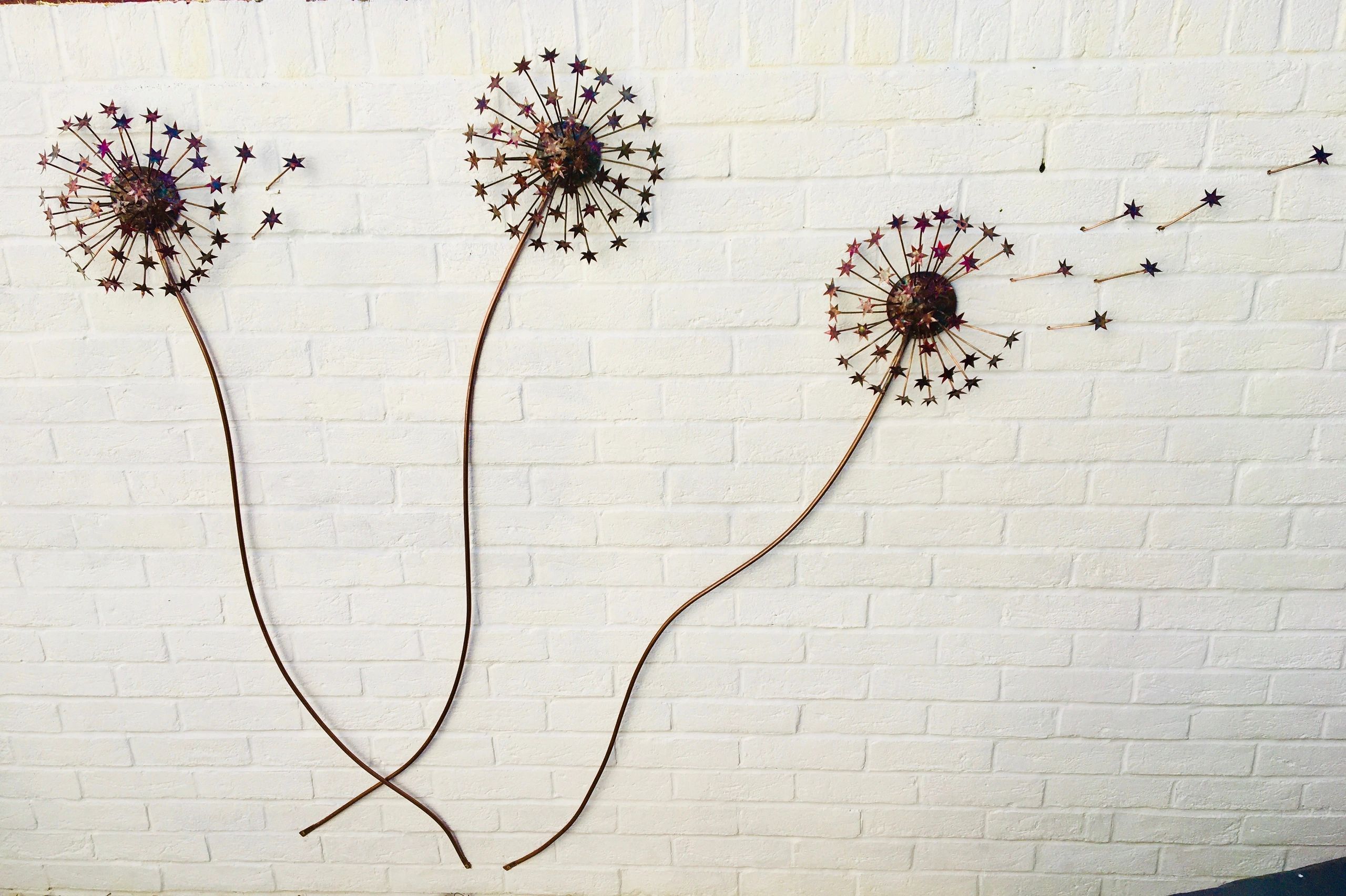 They asked me to come up some ideas for a sculpture based on this beautiful feature of nature, so I presented them with a prototype for the dandelion heads. With their input the design was refined, and quickly we agreed the form of 3 pieces that would sit together on their wall. Some of the seed were separated from the head to mimic the action of wind blowing the seeds away, and once installed they were delighted with the effect. Even better, when the sun shines it casts shadows onto the wall which make them look almost 3D, and the subtle flame colouring makes each seed sparkle in the light.