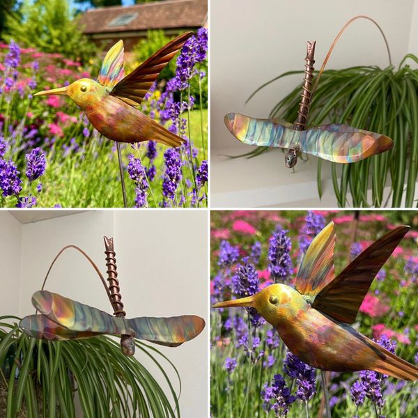 This new workshop introduces participants to flame painting, a technique I have been practicing for some years. During this 4 hour workshop you will make a hummingbird and a dragonfly plant decoration, both of which you will take home. In addition to learning coppersmithing techniques including annealing, shaping, forming, welding and polishing, you will also play with flame painting to develop amazing colours on your pieces. You will be shown how to use a variety of tools and equipment in fun and relaxed environment, as you create your masterpieces, each one unique.